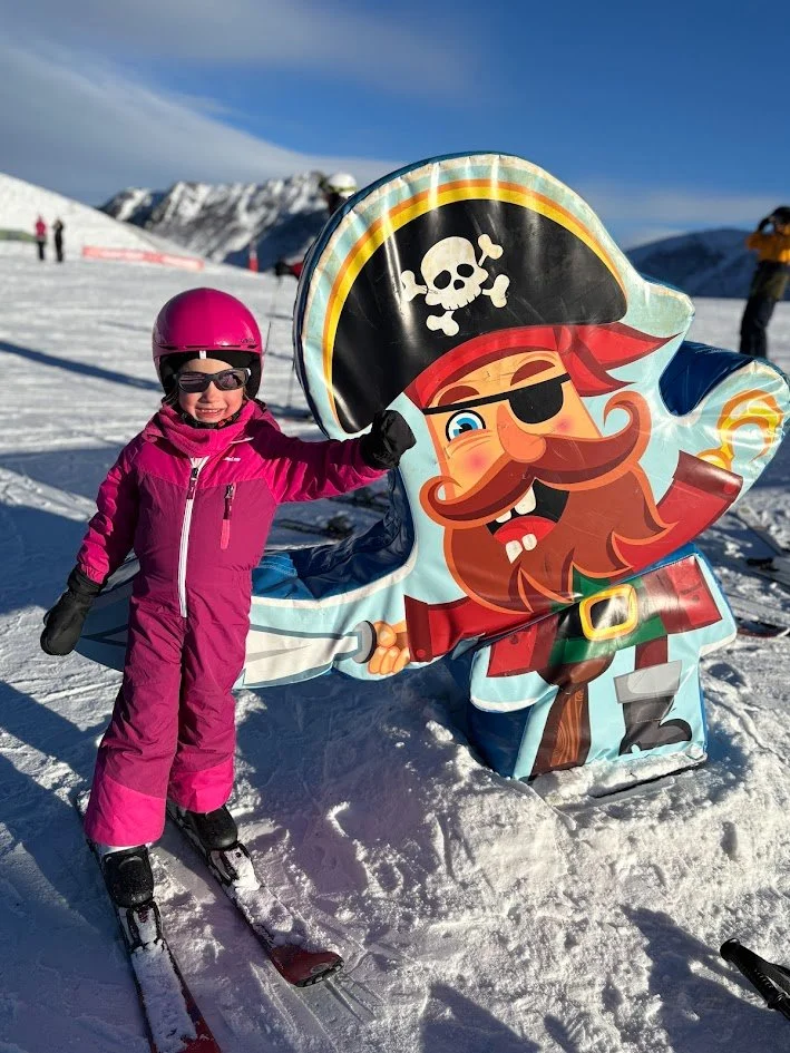 Het skigebied is op kindermaat opgebouwd, met het piratenthema als rode draad. Zo is er een speeltuin op de piste (ideaal voor een pauze), verschillende snowparks en een familiepiste: chemin des pirates. Die laatste konden we helaas niet testen, omdat een deel ervan afgesloten was door gebrek aan sneeuw.