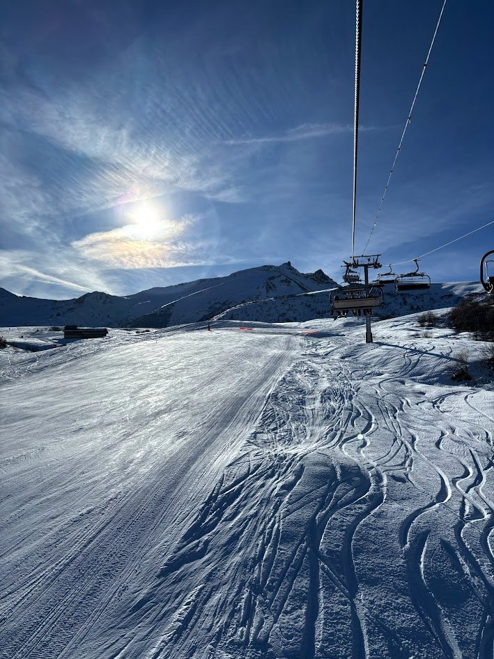 In de weken voor de kerstvakantie was er in Valmorel weinig tot geen sneeuw gevallen. Wij hadden uitzonderlijk veel zon, warm zelfs, met gevoelstemperaturen rond de 5 à 8 graden. Heerlijk, al had dat ook zijn gevolgen. Enkele lagere pistes bleven gesloten en ook de sneeuwkanonnen konden niet ten volle ingezet worden wegens de zon. Toch bleven er meer dan voldoende pistes over, waardoor we elke dag andere routes konden skiën. Iedereen tevreden!